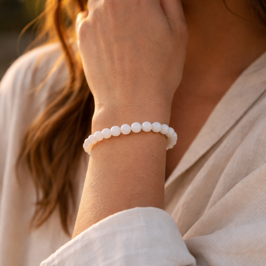 The White Jade EEBracelet is a nurturing, bio-scalar enhanced wearable designed to support emotional balance, spiritual clarity, and overall well-being. Known as a stone of calmness and purity, White Jade fosters inner peace, promotes self-expression, and encourages mental clarity.