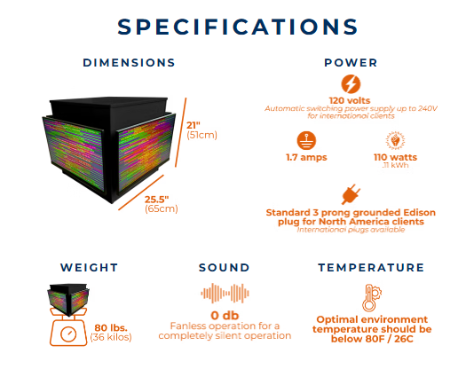 The longitudinal scalar field effect is broadcast from this true standing columnar wave. The technology itself is more than scalar in that it also has the bio-photonic (light), DNA patterns, and cellular communication algorithms that are broadcast via the monitors. Using approximately 1/3 the power of a standard 4-unit EESystem™, it boasts being aesthetically pleasing, semi-portable, compact, cost-effective, and more power efficient than a standard system.